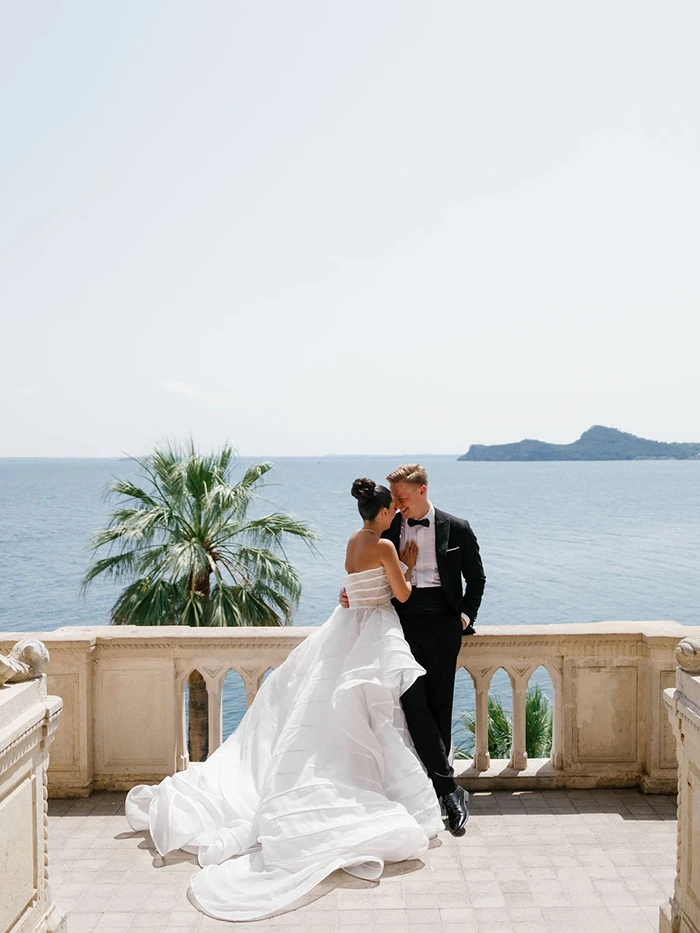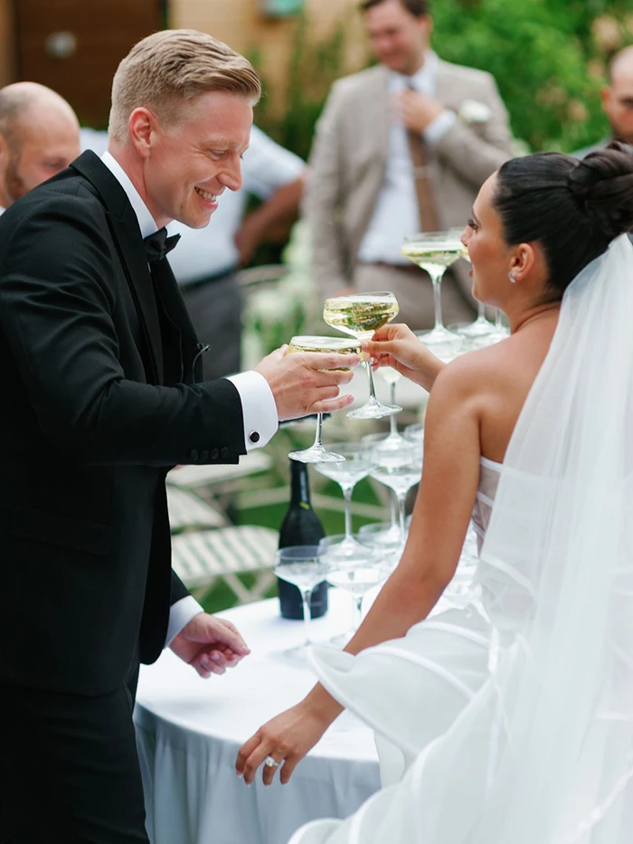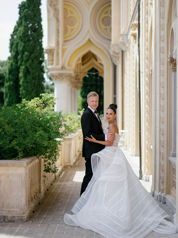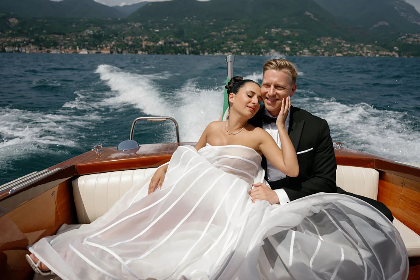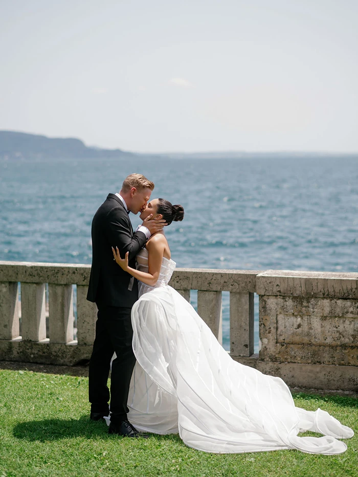 When Nicole and Alex first came to us, they were full of excitement and anticipation for their wedding day. Their vision? A sophisticated summer wedding on Lake Garda that would celebrate not only their love but also the union of two different cultures and traditions. The venue? The oneof-a-kind Isola del Garda, serving as the stunning backdrop for relatives and friends traveling fromopposite corners of the world.