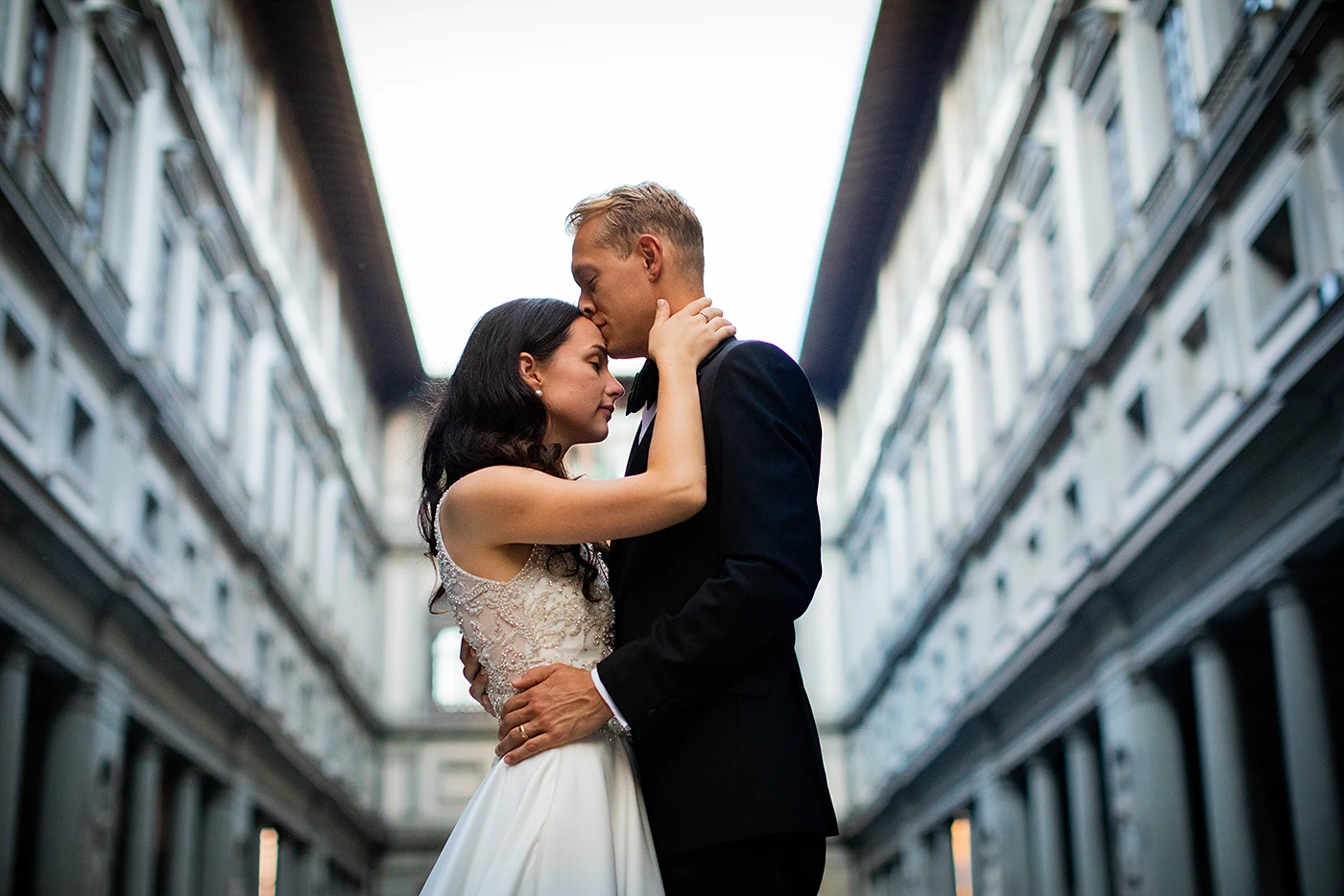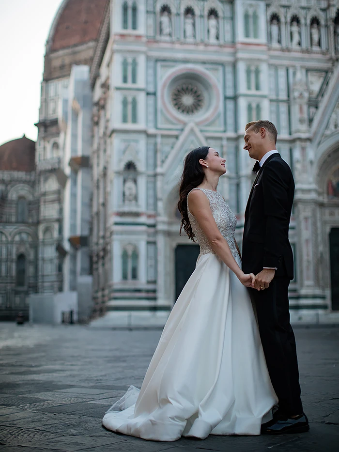 Poised above the dazzling tapestry of Florence, this high-summer terrace wedding brought a fresh, vibrant twist to Florence’s timeless elegance. Katherine and Scott-young, spirited, and irresistibly in love-dreamed of a celebration that felt both classic and joyfully. From our very first conversation, we knew this was going to be a special project. Their wish? A wedding that blended refined sophistication with a burst of color with a playful smoothie-inspired palette.